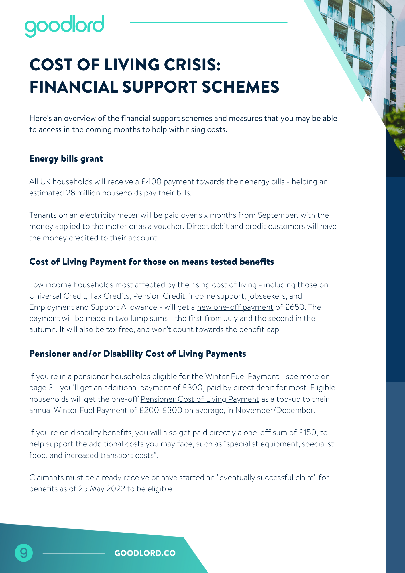 Download and share this list of the financial support available to help your tenants if they struggle to pay their bills during the cost of living and energy crisis.