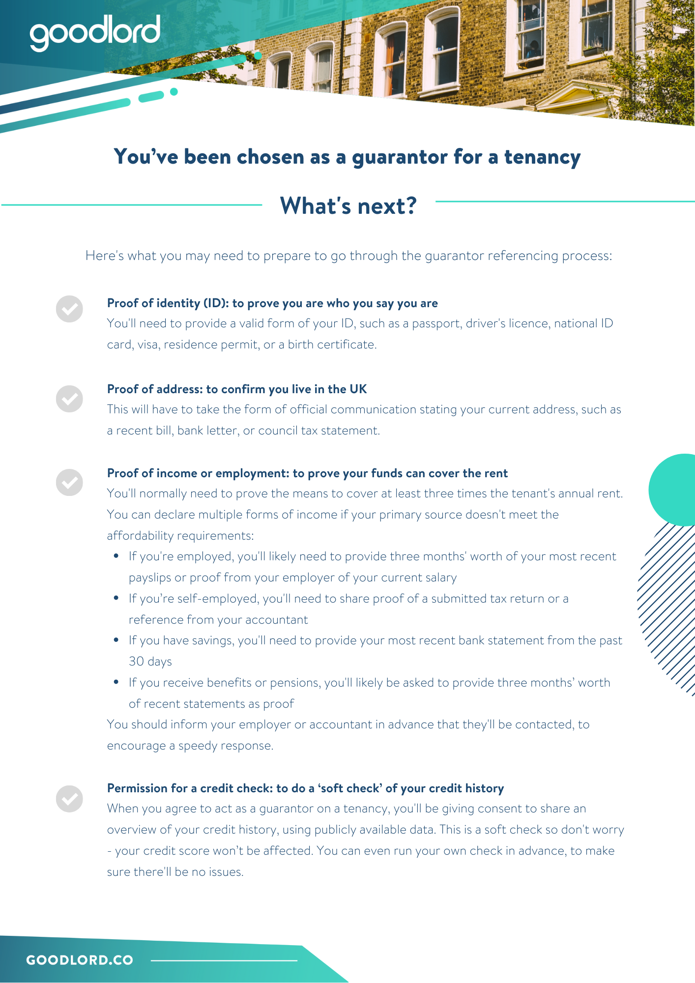 Download and share this checklist with your tenants' guarantor, to help them prepare for their role in the referencing process.