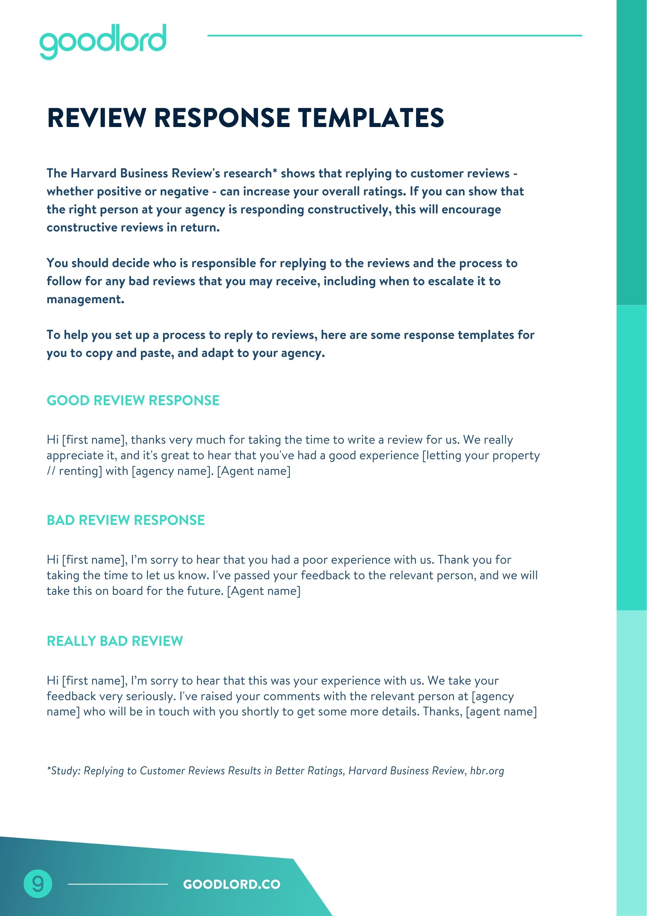 Use these template responses to reply to tenant and landlord reviews, and help boost your review ratings.