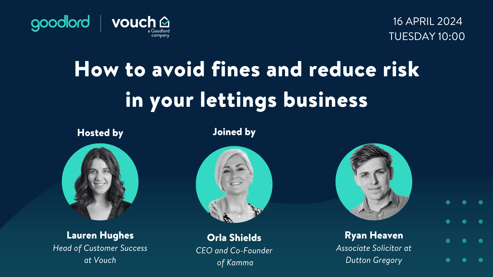 Join Lauren Hughes, Head of Customer Success at Vouch, Orla Shields, CEO and Co-Founder at Kamma, and Ryan Heaven, Associate Solicitor at Dutton Gregory. They’ll run you through how you can remain compliant in your letting agency, traps you should avoid, and how you can continue to remain compliant when legislation keeps changing.