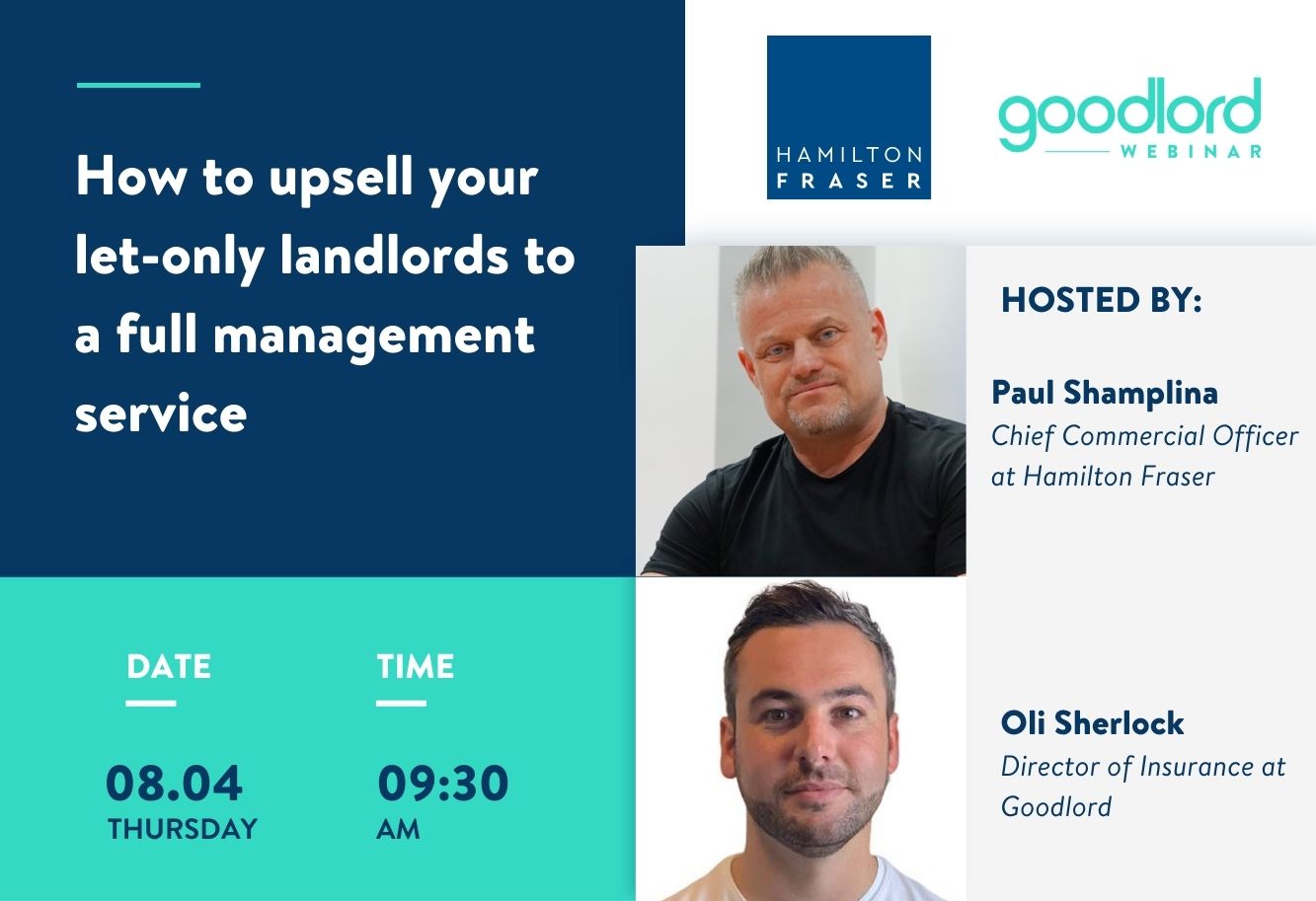 Join Goodlord’s Director of Insurance, Oli Sherlock, as he chats to Paul Shamplina, Chief Commercial Officer at Hamilton Fraser, about how to upsell your let-only landlords to a full management service.