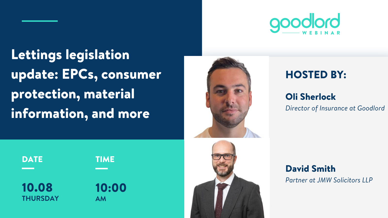Join this session to learn what agents need to keep an eye on, with David Smith, Partner at JMW Solicitors, and Goodlord's Director of Insurance, Oli Sherlock.