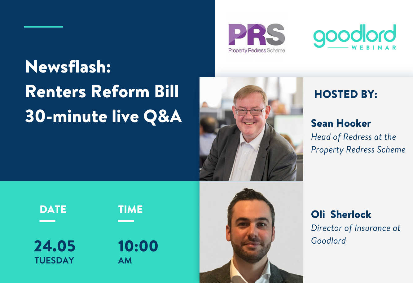 The government confirmed its intentions to "deliver the biggest change to renters law in a generation" in the Queen's Speech with its long-awaited Renters Reform Bill. Sean Hooker, Head of Redress at the Property Redress Scheme, joins Oli Sherlock, Goodlord's Director of Insurance, to discuss the proposals, including the abolition of section 21 and the introduction of a "Private Renters’ Ombudsman", and answer your questions live.