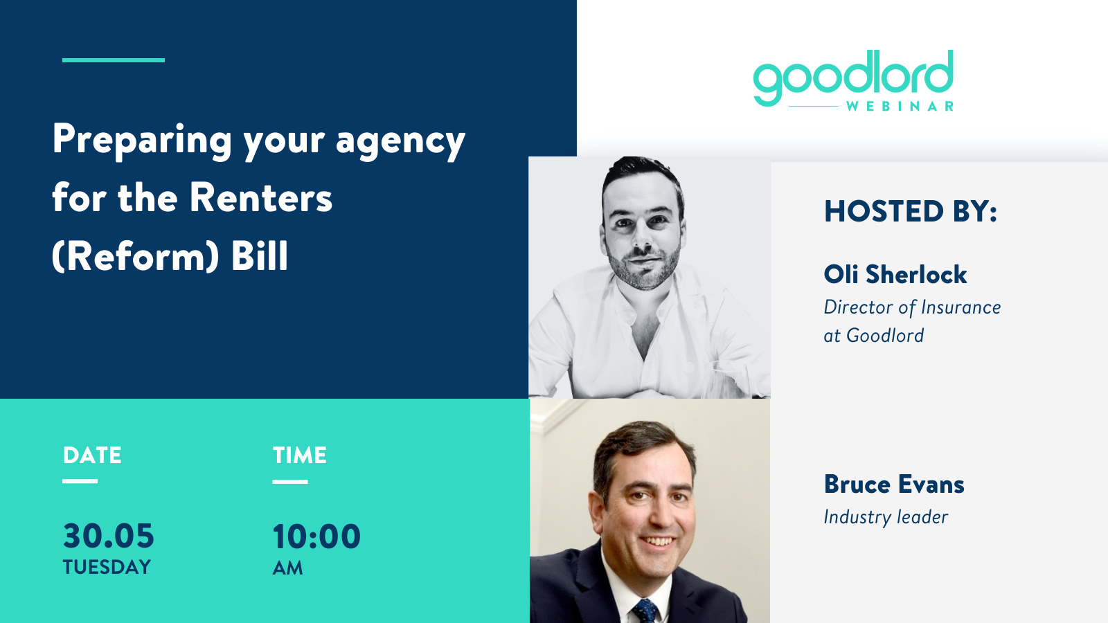 The recently introduced Renters (Reform) Bill will affect your agency’s processes, revenue and compliance. Oli Sherlock, Director of Insurance at Goodlord will be joined by Bruce Evans, industry leader and lettings expert. to discuss how the Renters (Reform) Bill will affect your agency's earnings and provide guidance on how you can supplement these revenue streams.