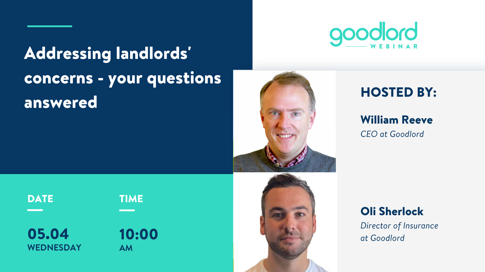 Join us for a webinar discussion and get your questions answered in our live Q&A with Goodlord's William Reeve, CEO, and Oli Sherlock, Director of Insurance.